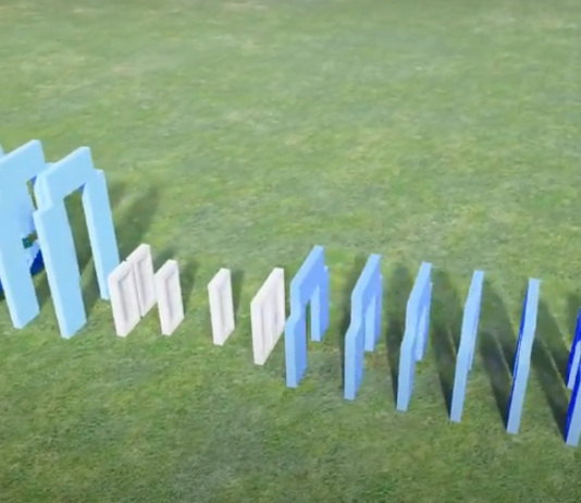 目的が謎(笑)超巨大ドミノがあのピサの斜塔にトドメの一撃!