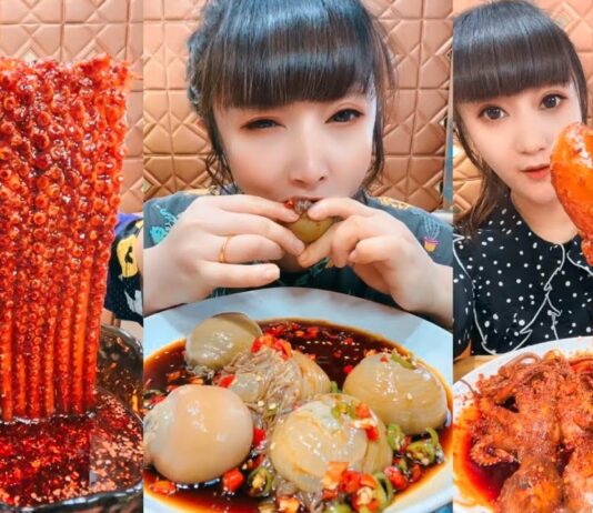 中国人女性の辛い食事ばかりのモッパン動画