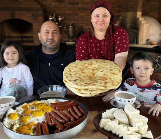 ダゲスタンの民族食を作って食べる家族の暮らし。