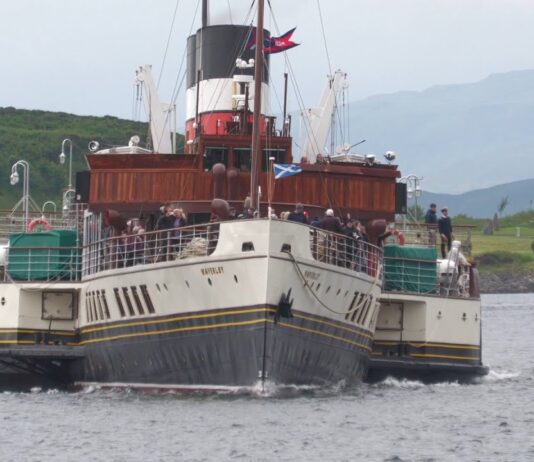 ボートに乗っている男性が行く先が坂になっている事に気付く
