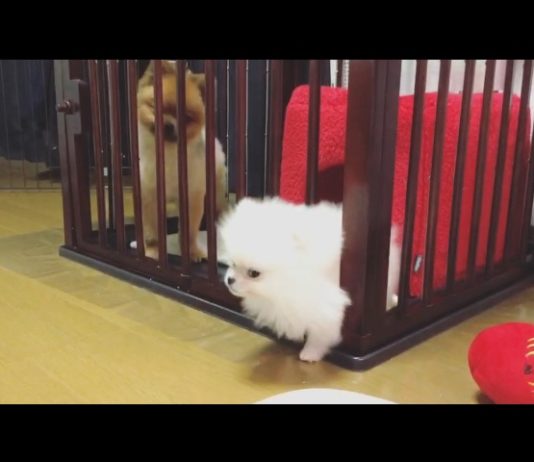 ケージの意味が無くなってしまっている?ポメラニアンの赤ちゃん