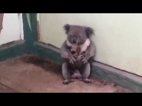 喧嘩で劣勢になったコアラが壁際に追い詰められる